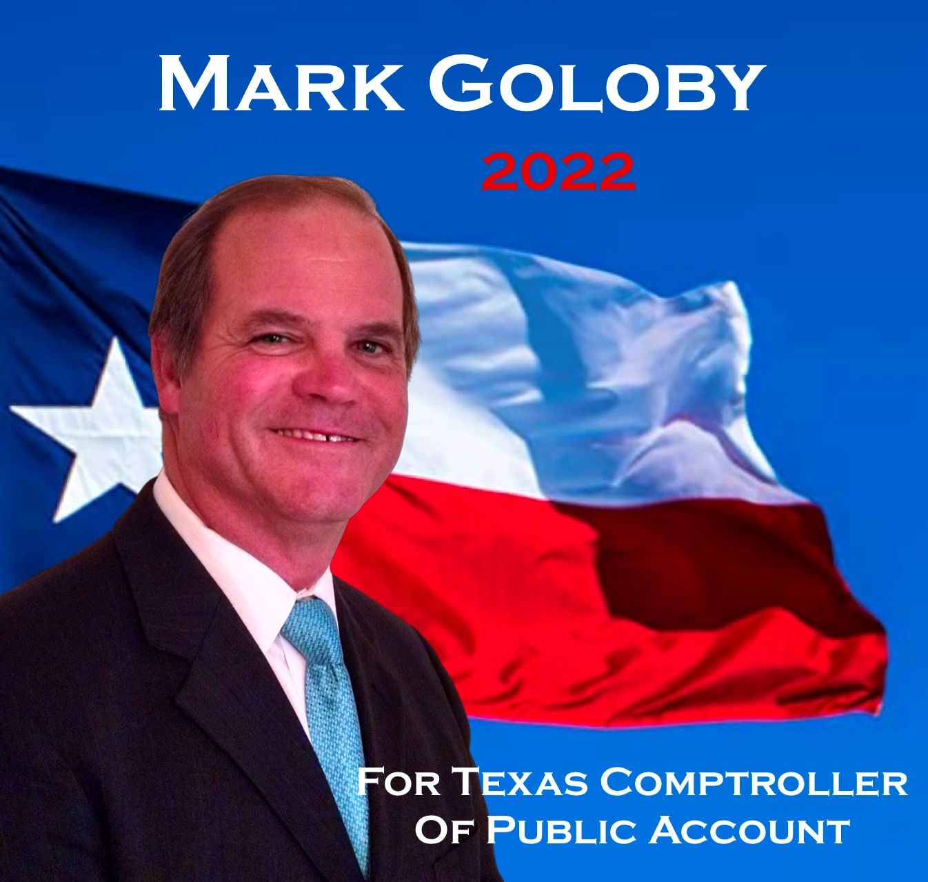 Mark V. Goloby Mark V. Goloby Office: Comptroller Of Public Accounts Candidacy Status: Candidate Ballot Position In Contest: 2 Phone: E-Mail: 2022 Candidates Texas Comptroller. Mark V Goloby. Glenn Hegar Texas Commissioner of the General Land Office. Don Minton. Dr. Tim Westley. Ben Armenta Weston Martinez. Victor Avila. Dawn Buckingham Jon Spiers Rufus Lopez Texas Agriculture Commissioner. Carey A. Counsil James White Sid Mille. Texas Railroad Commissioner. Wayne Christian. Dawayne Tipton. Sarah ... Election Day information, sample ballots Election Day information, sample ballots. Midland Reporter-Telegram. Feb. 28, 2022. Election file art. Tim Fischer/Midland Reporter-Telegram. Early voting information. Two-week total in-person ... Comptroller of Public Accounts - Tarrant Votes Mark V. Goloby Because someone should lobby for the Texas Taxpayer I spent 5 years rallying Texans to end Chapter 313 of the Texas Tax Code In the 2019 legislative session the Texas Senate allowed chapter 313 to expire 313 is a $1billion (1% of Total Texas Budget) fraud on taxpayers under the guise of Economic development