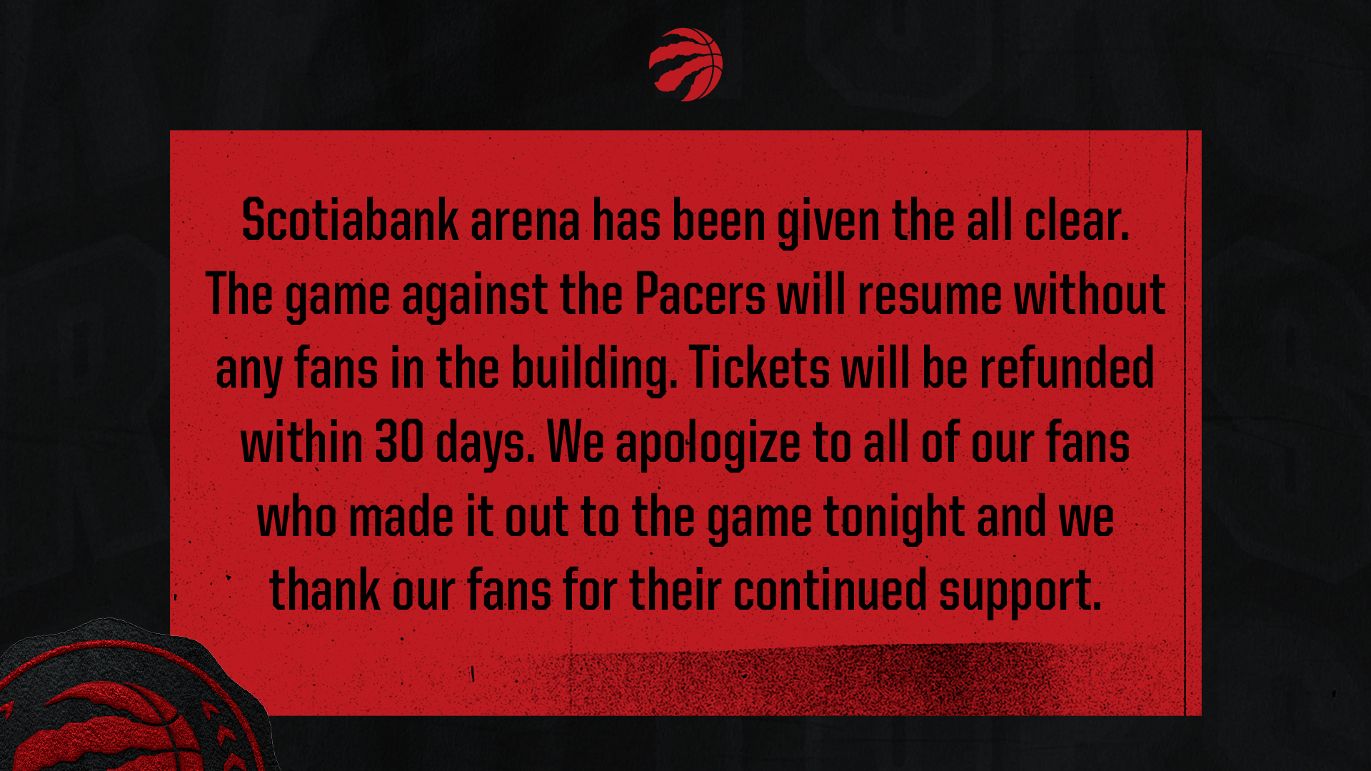 The Raptors-Pacers Game Will Finish Without Fans After A ... The Toronto Raptors played host to the Indiana Pacers as Scotiabank Arena on Saturday night in a game with huge Eastern Conference playoff ramifications. While the Pacers are playing for ping pong ...