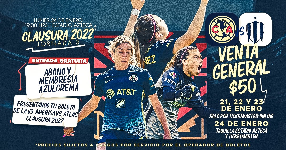 Club América vs Monterrey live score, H2H and lineups ... Club América is going head to head with Monterrey starting on 25 Jan 2022 at 1:00 UTC at Estadio Azteca stadium, Mexico City city, Mexico. The match is a part of the Liga MX, Women, Clausura. Club América played against Monterrey in 1 matches this season. Currently, Club América rank 4th, while Monterrey hold 1st position.