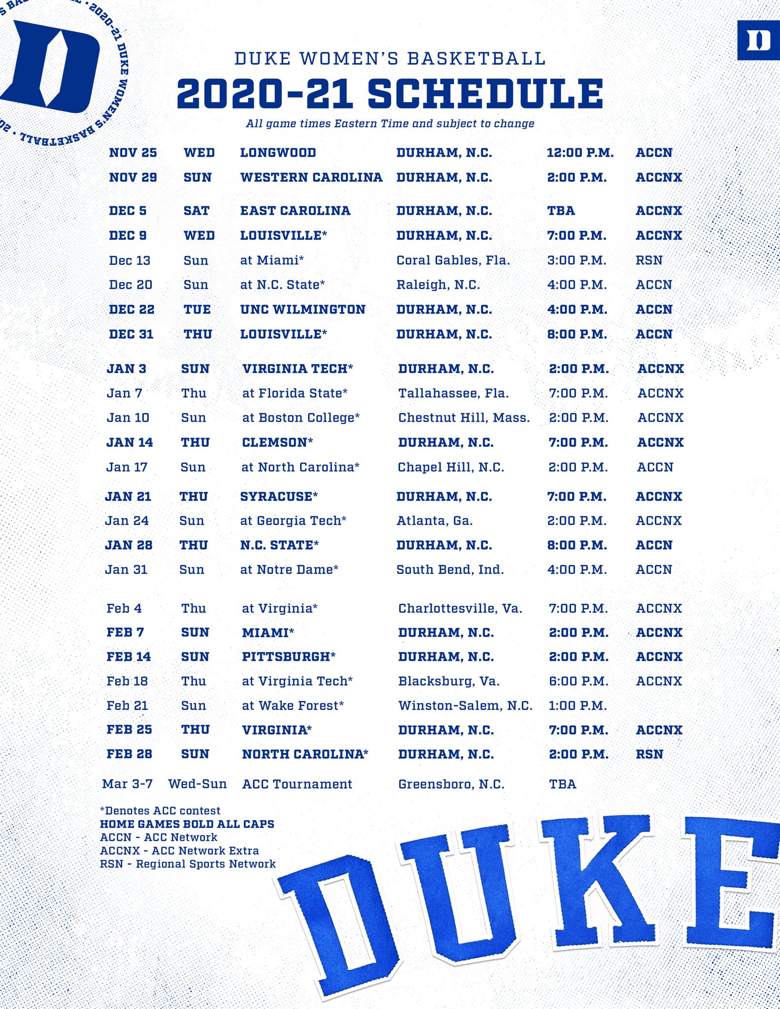 Duke basketball schedule 2021-22: How to watch every game ... How many nationally televised games will Duke play this year? Out of Duke's 31 regular season games this season, 12 will be nationally televised on ESPN or ESPN2. From the pre-season polls, eight... How to watch Duke vs. Wake Forest, live stream, TV channel ... How to watch Duke vs. Wake Forest, live stream, TV channel, time, NCAA college basketball FTW Staff 2/15/2022 Lawmakers reject Russian official's request to return Alaska: 'Never, ever, ever'